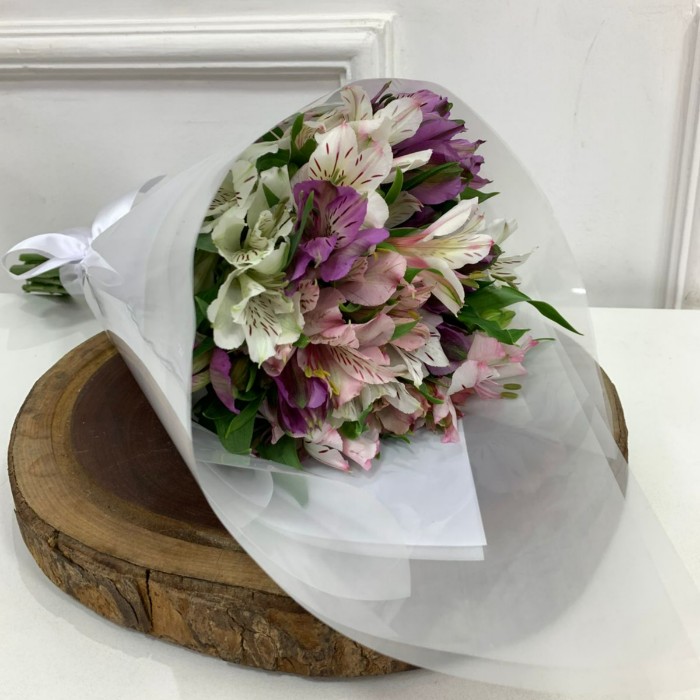 Ficha Técnica do Produto: Mini Buquê de Astromélias 1- Composição Floral: – 8 hastes de Astromélias coloridas 2- Embalagem: – Envoltório de papel decorativo com estampa de mensagem – Laço de fita dourada para acabamento 3- Dimensões do Buquê: – Altura: 20-30 cm – Diâmetro: 15-20 cm 4- Estilo: – Romântico e clássico, ideal para demonstrações de amor e afeto 5- Ocasião: – Aniversários, Dia dos Namorados, e comemorações românticas 6- Cuidados e Manutenção: – Manter em água limpa e trocar a cada dois dias – Cortar as hastes na diagonal ao trocar a água – Evitar exposição direta ao sol As flores são itens perecíveis e sazonais, podendo sofrer alterações de acordo com a época, porém trabalhamos para atender a todos com uma qualidade excepcional. Pode acontecer a necessidade de realizarmos alguma substituição para entregar o seu produto dentro do nosso padrão.